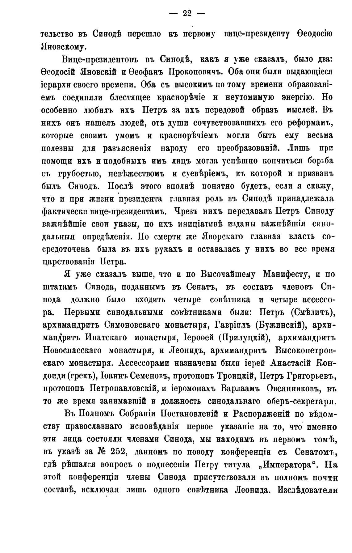 фактически вице-президентамъ. Чрезъ нихъ передавалъ Петръ Синоду