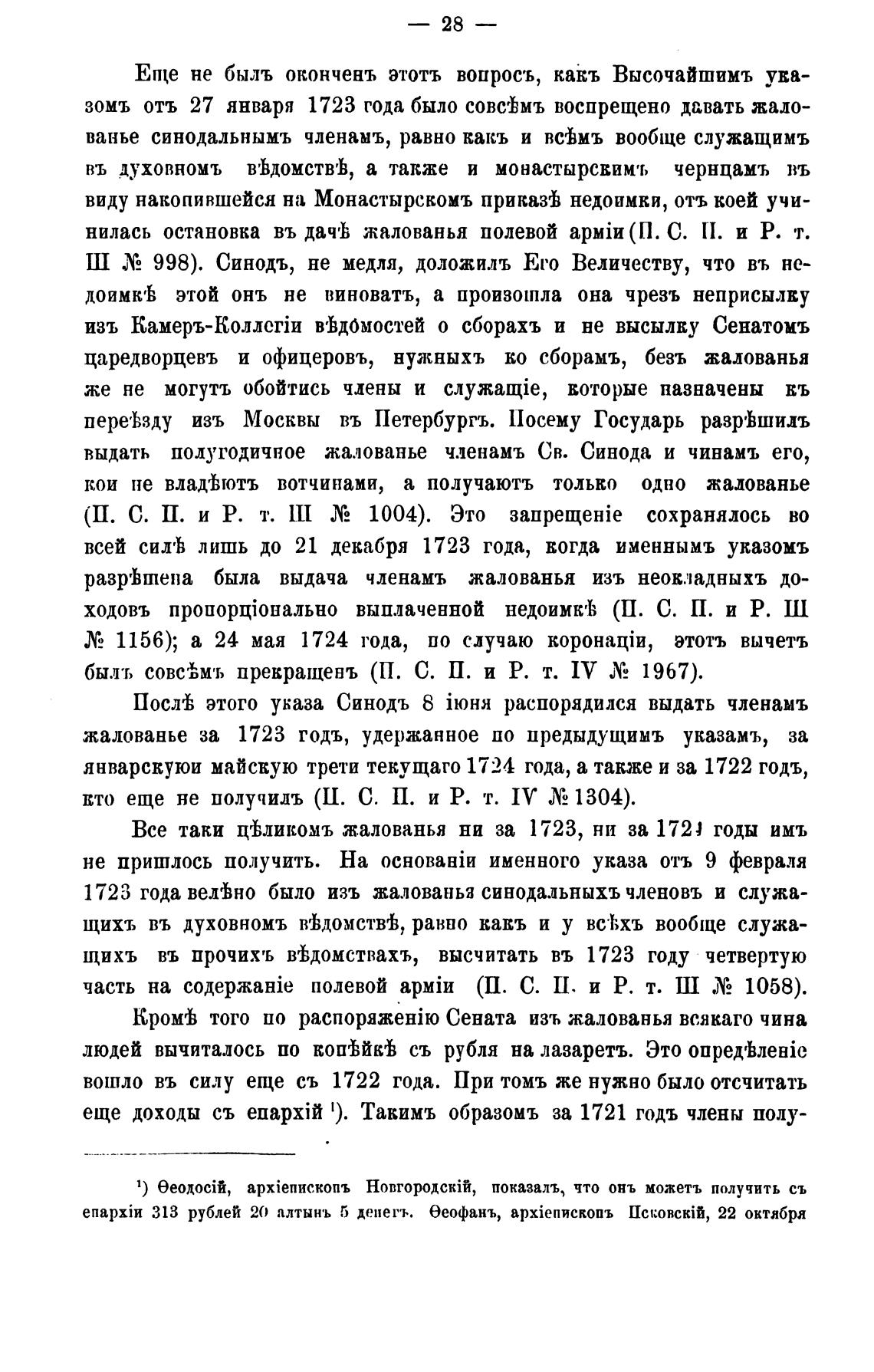1723 года велгђно было изъ жалованья синодальныхъ членовъ и служа-