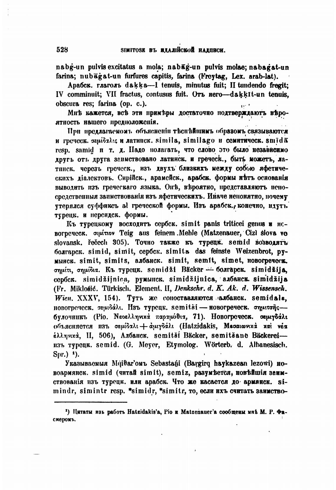1) Цитаты язь Hatzidakis'a, Pio и Matzenauer'a М. Р. Фа-