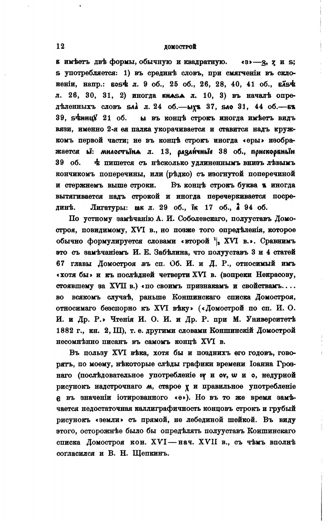 относимаго безспорно кь XVI в•Ьку» («Домострой по сп. И. О.