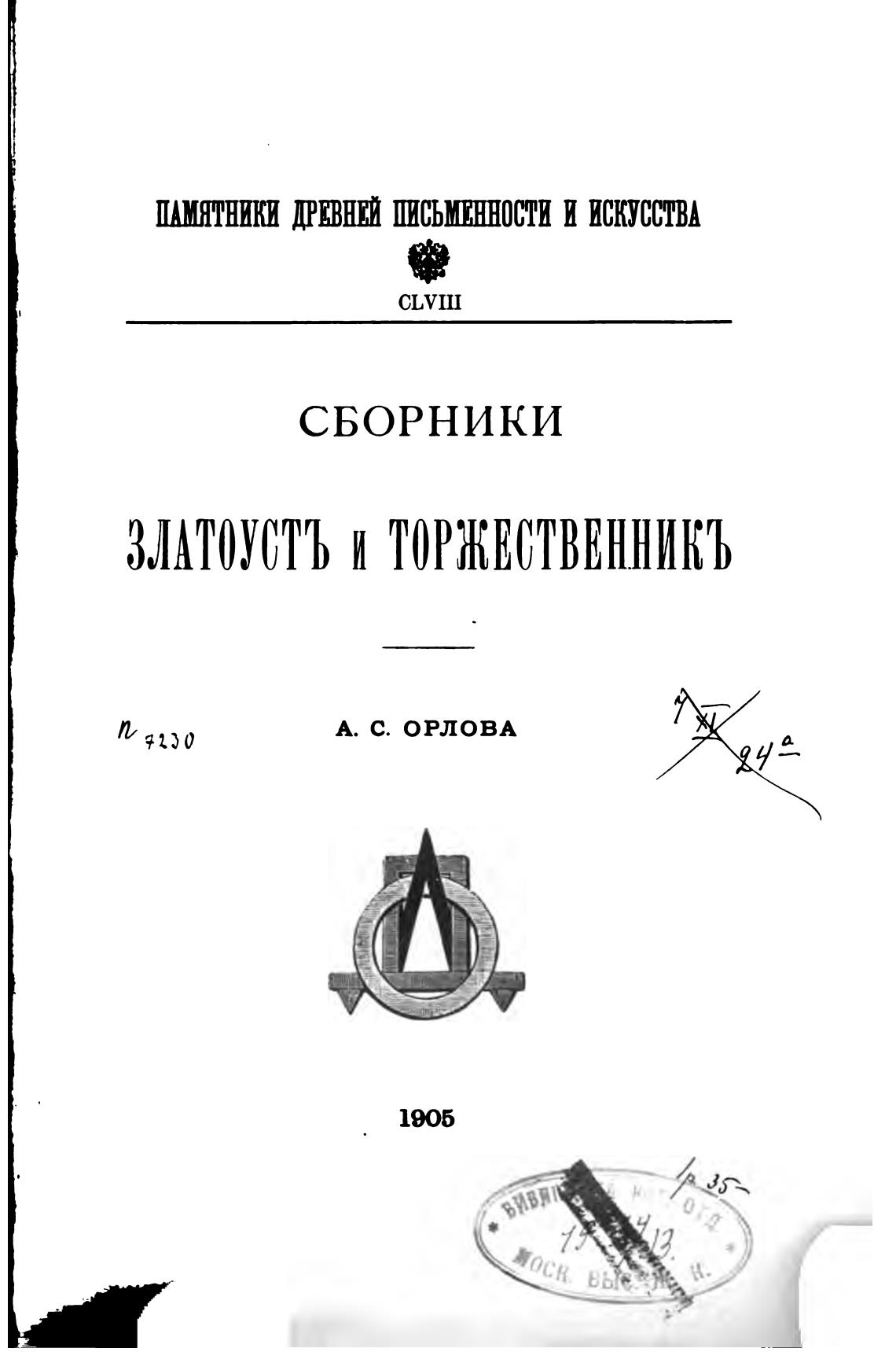 Сборники "Златоуст" и "Торжественник". - Орлов А. С.