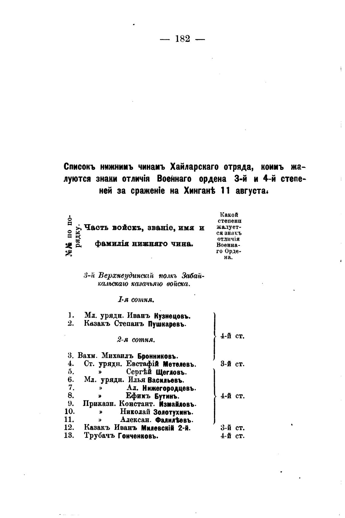 Списокъ нижнимъ чинаиъ Хайларскаго отряда, коииъ жа-