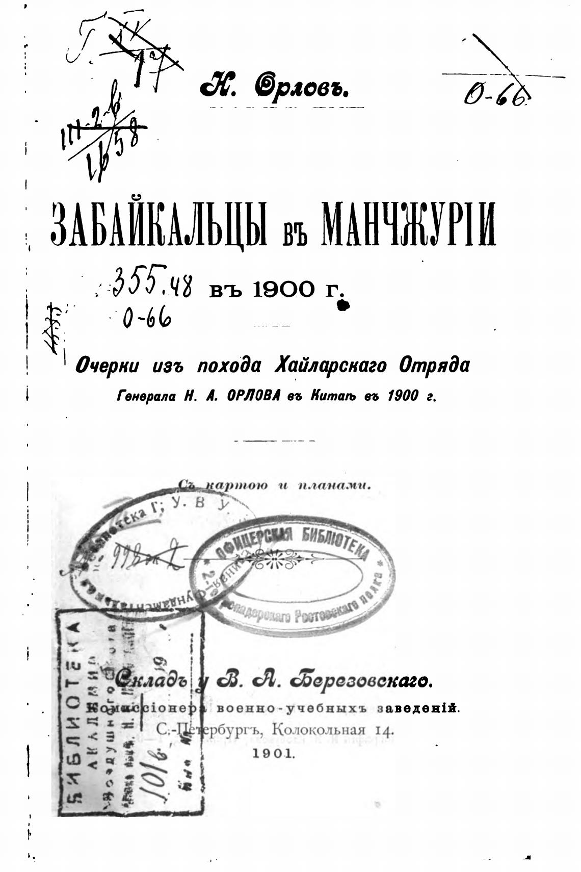 Генерала Н. А. ОРЛОВА Вб Китат въ 1900 г.