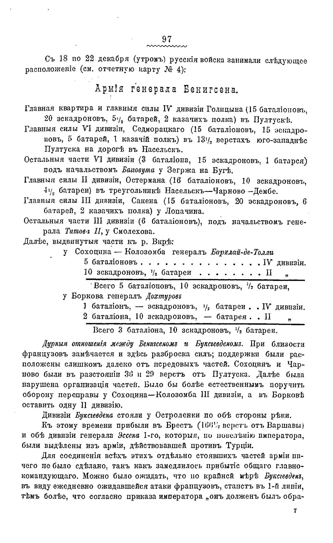 20 эскадроновъ, 5'/2 батарей, 2 казачихъ полка) въ Пултуске1;.