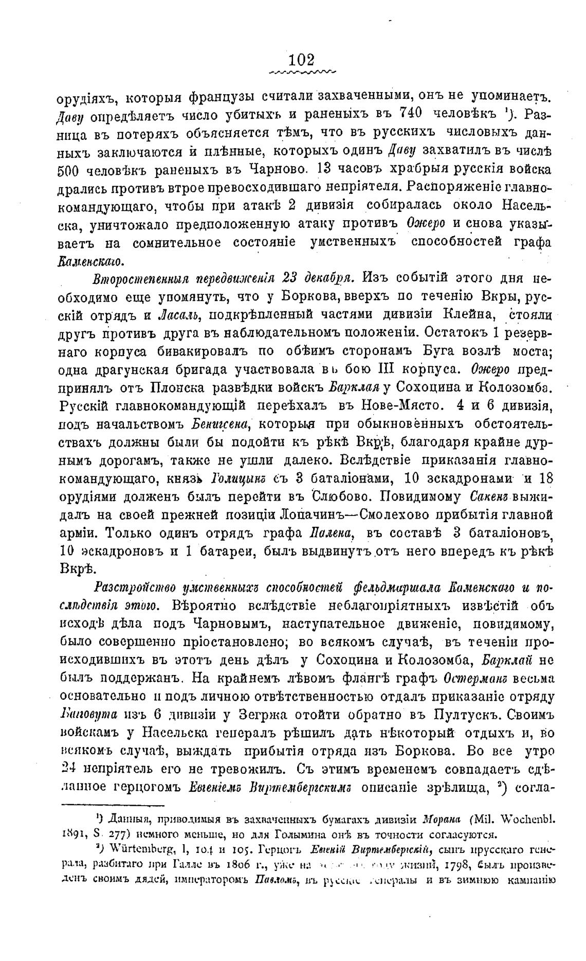 Даву опред±ляетъ число убитыхъ и раненыхъ въ 740 челов±къ 1). Раз-