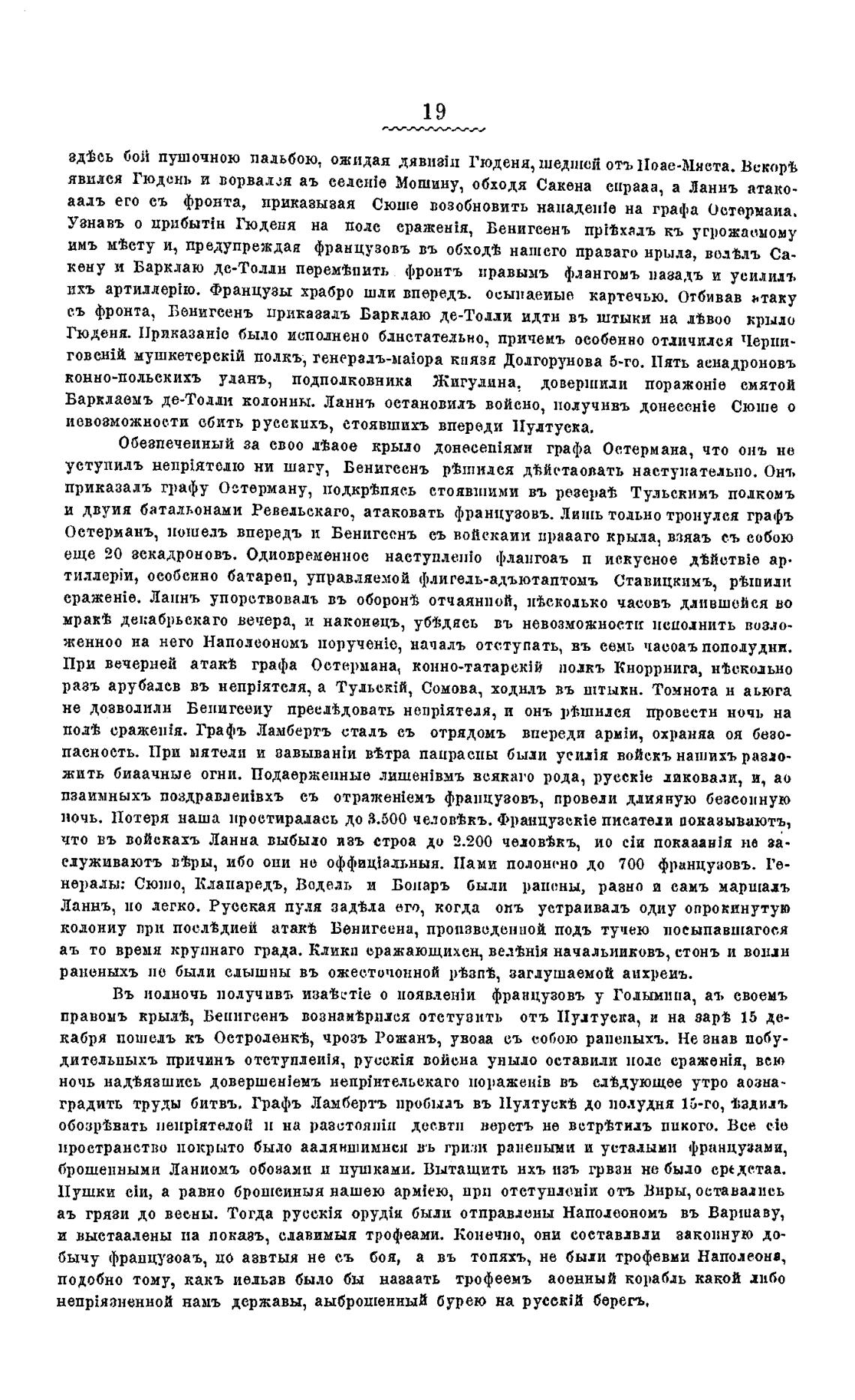 Оетерманъ, пошелъ впередъ Бенигеенъ съ войскаии праааго крыла, взяаъ с.ъ собою