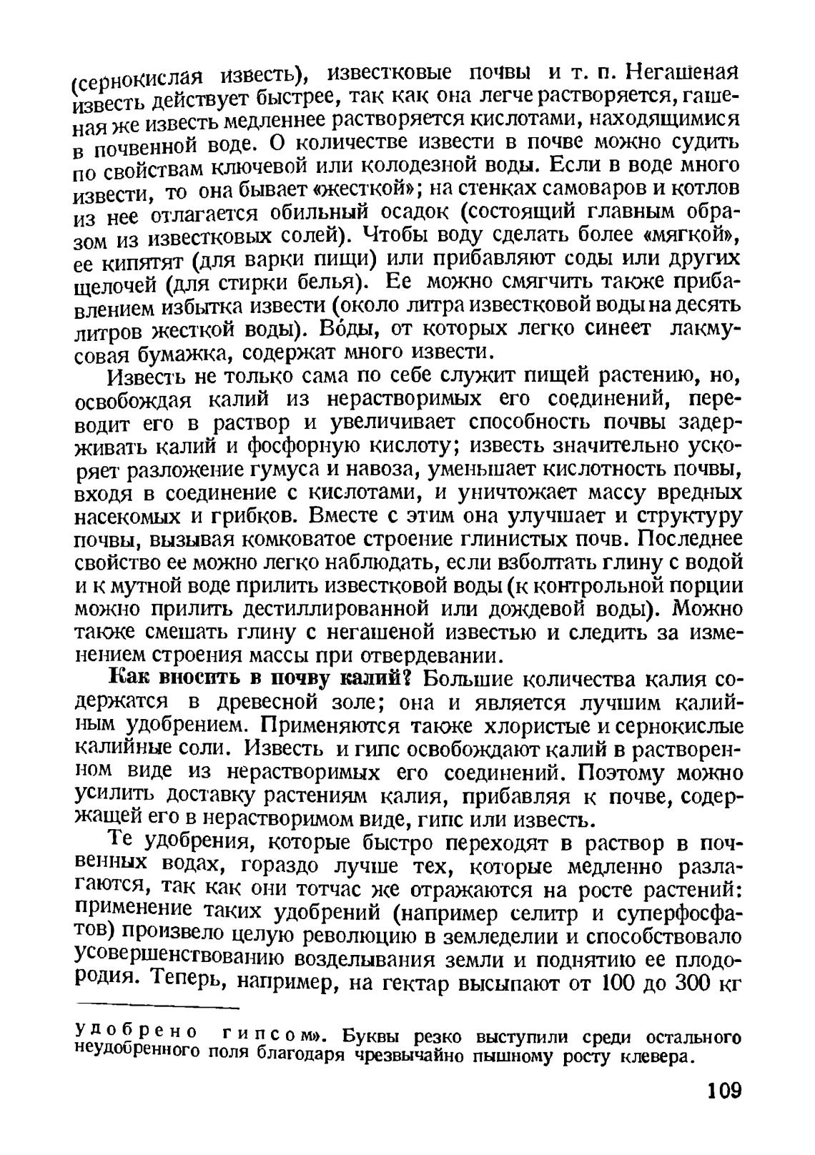 калийные соли. Известь и гипс освобождают калий в растворен-