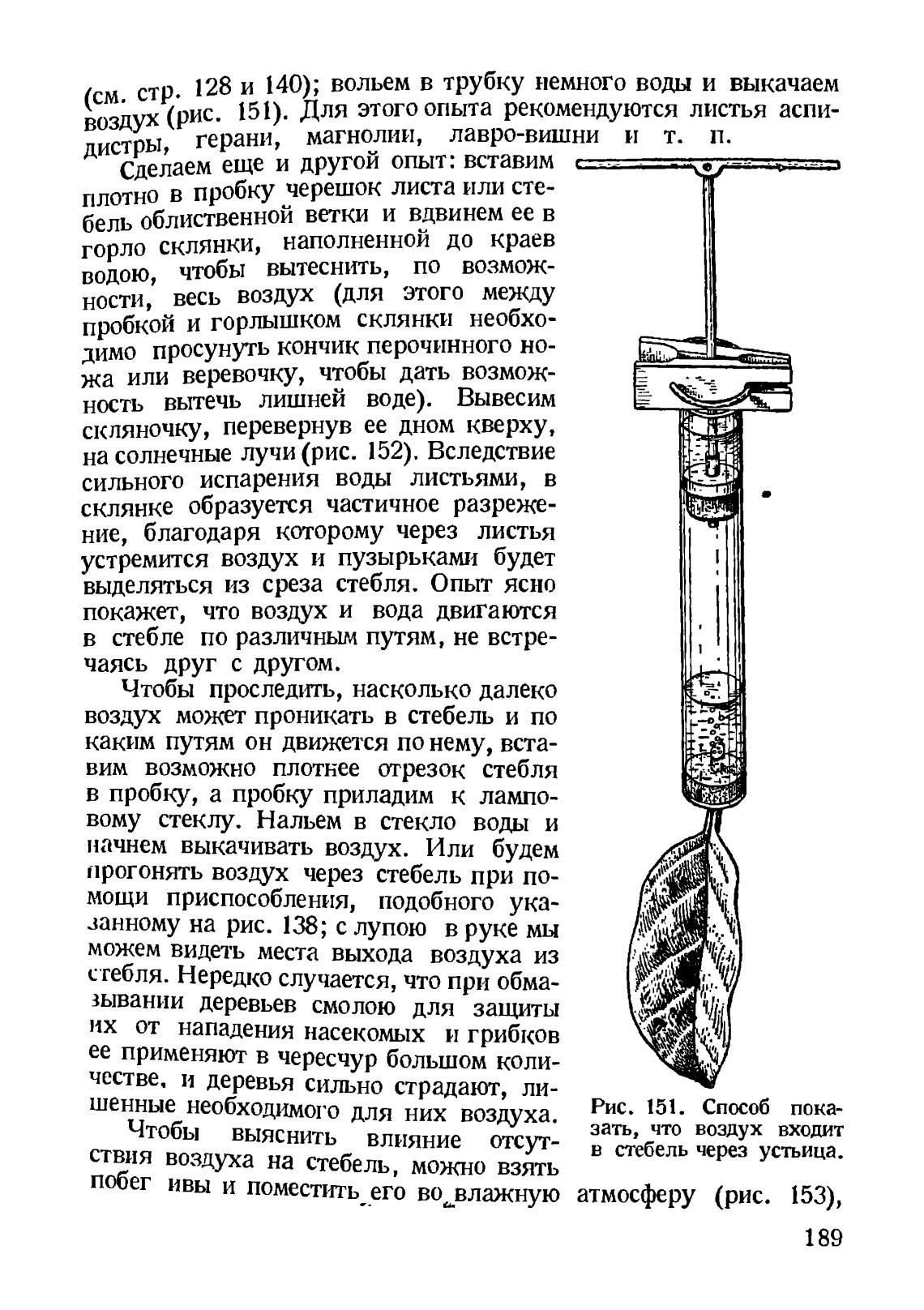 воздух (рис. 151). Для этого опыта рекомендуются листья аспи-