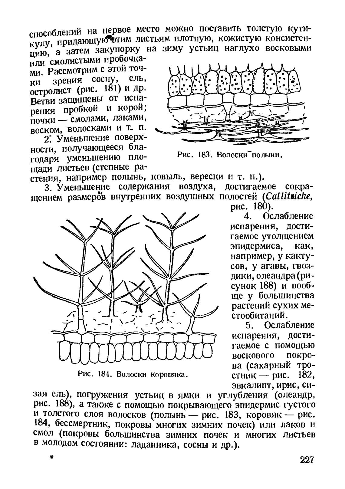 и толстого слоя волосков (полынь — рис. 183, коровяк — рис.