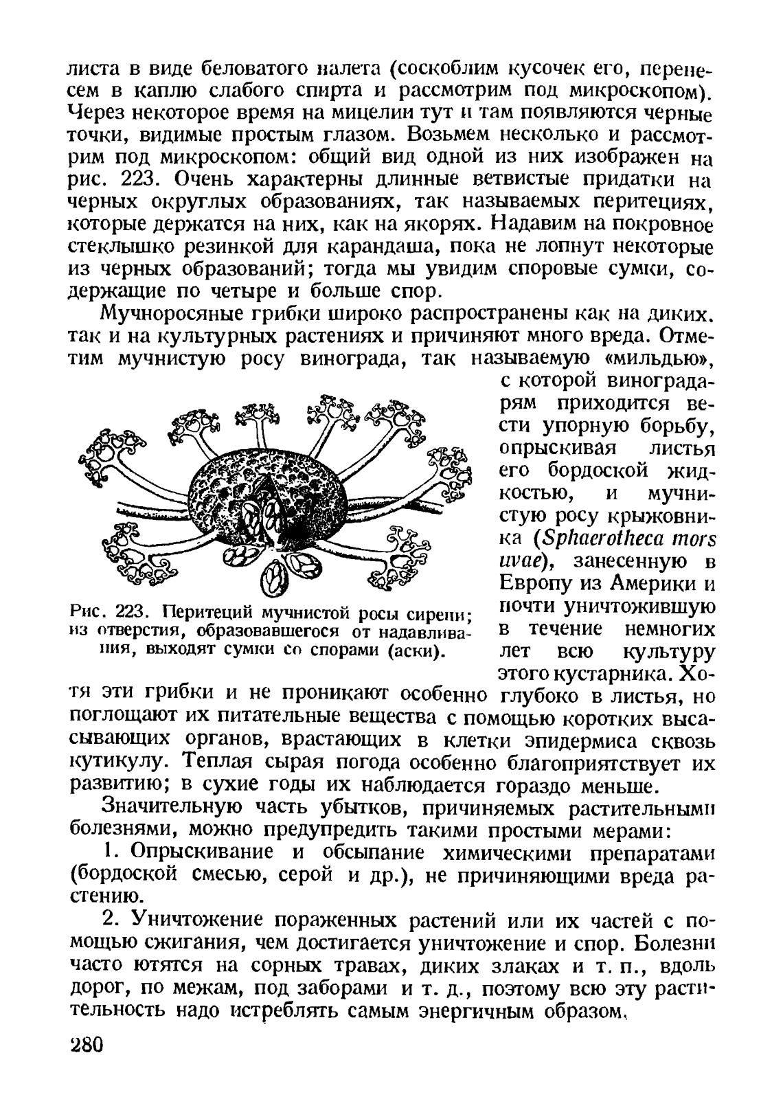 Рис. 223. Перитеций мучнистой росы сирени;