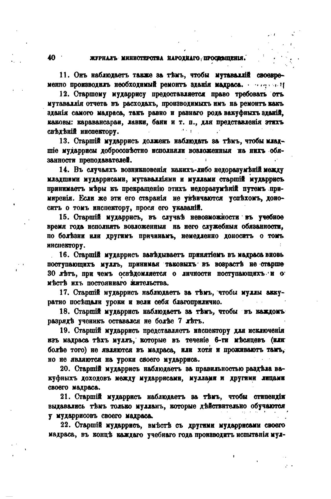 18. Старшт мударрись наблюдаеть за Вмъ, чтобы въ вщомъ
