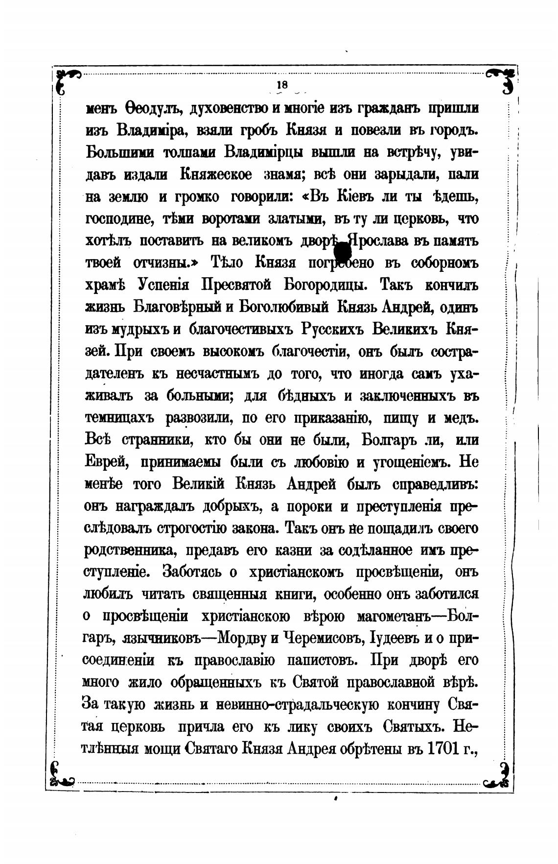 тл'ћнныя мощи Святаго Князя Андрея обржены въ 1701 г.,