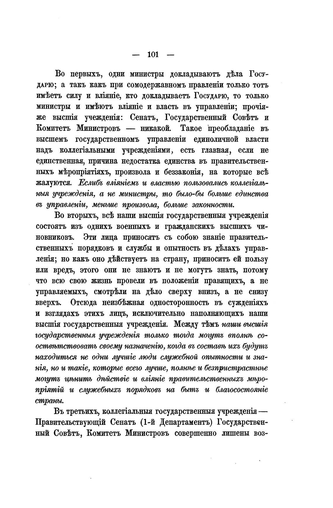 ныя учрежденбя, а не министры, то было-бы больше единства