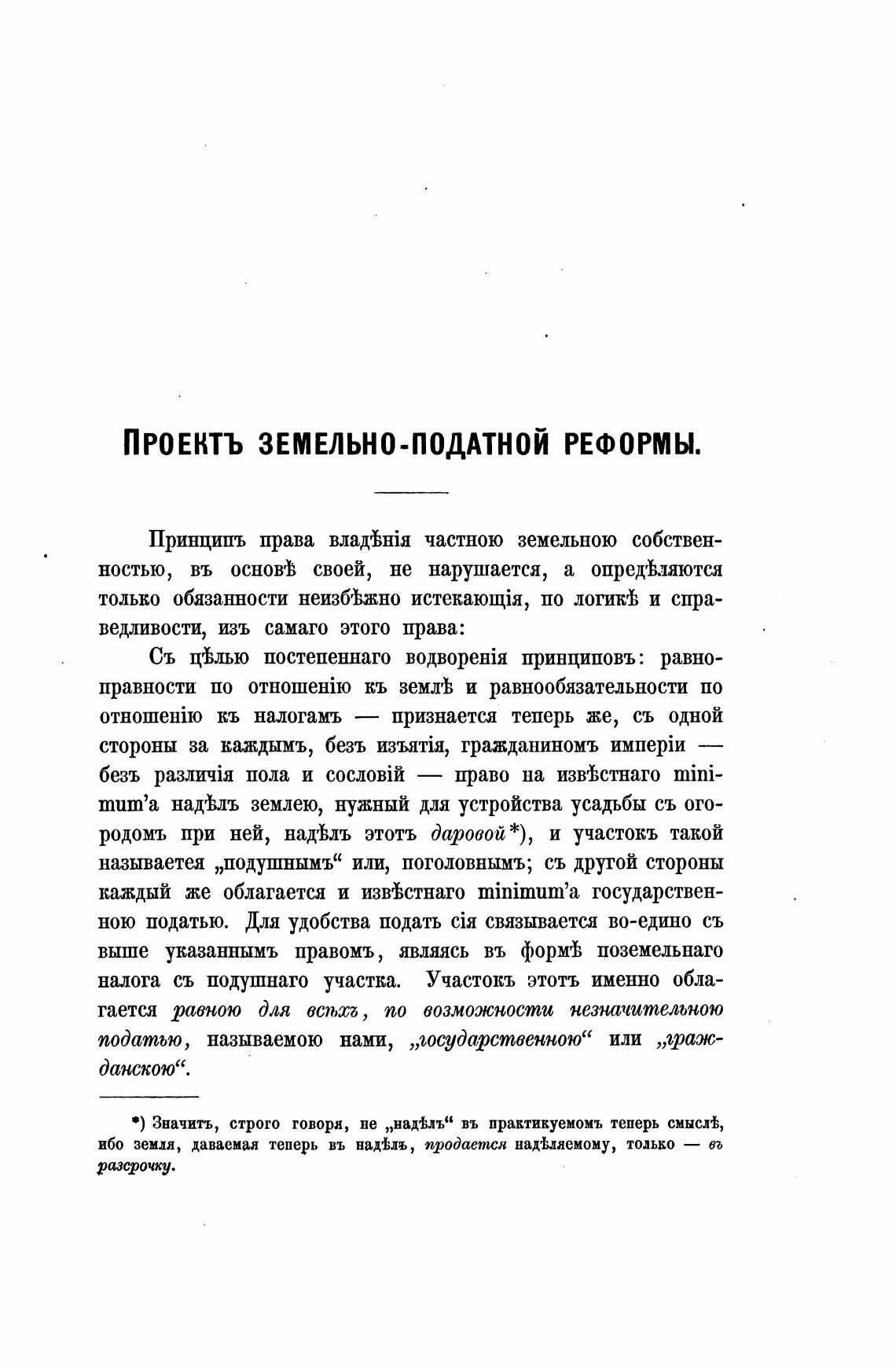 ПРОЕКТЪ ЗЕМЕЛЬНО-ПОДАТНОЙ РЕФОРМЫ.