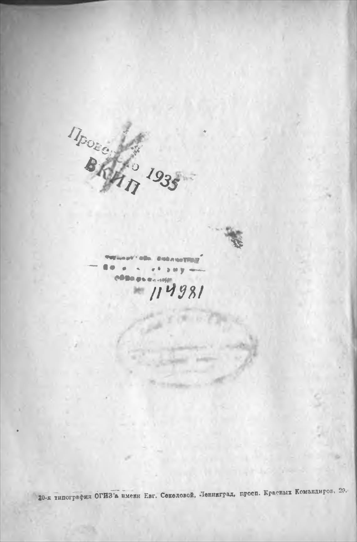 30-5 типография ОГИЗ'а вмени Евг. Соколовой, Ленинград, просп. Красных Командигов, 29.