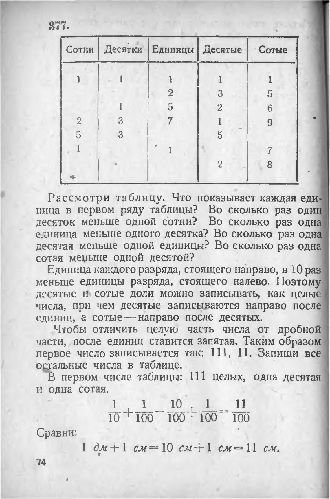 В первом числе таблицы: 111 целых, одна десятая