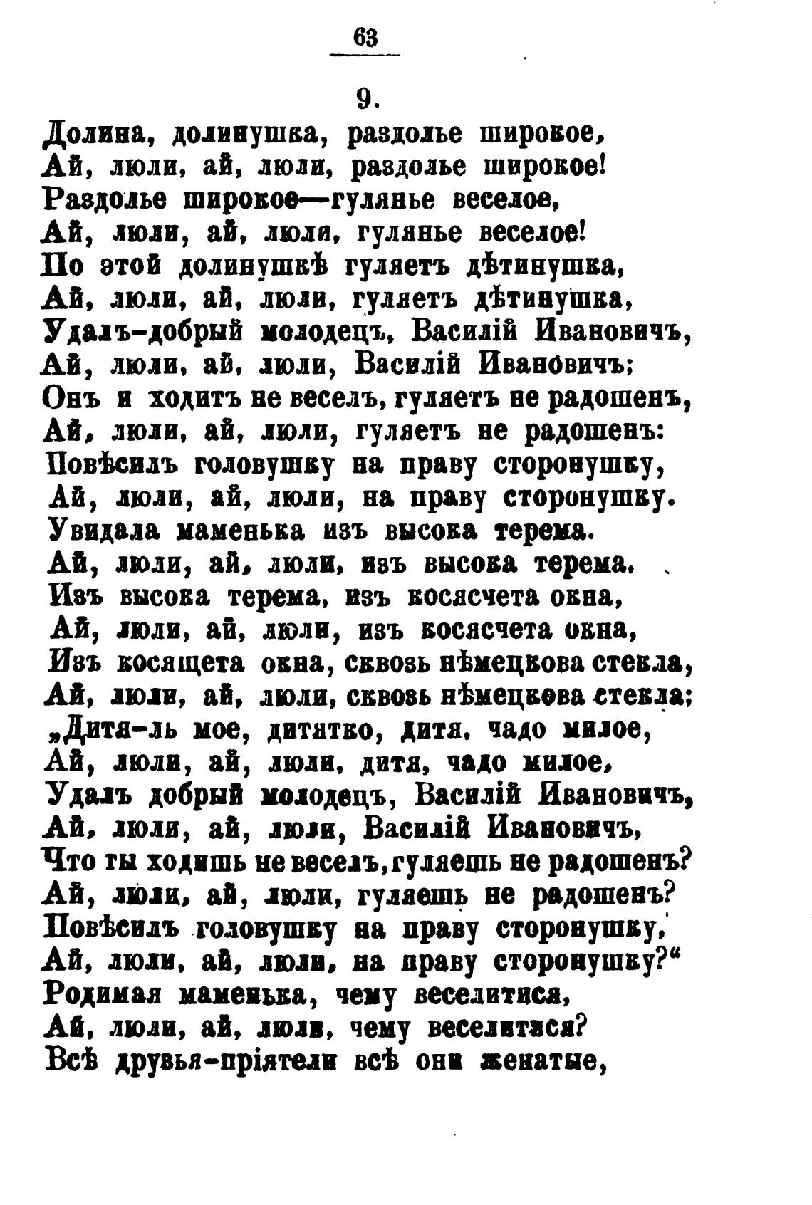 Ай, люли, аи, шли, ВасиЈИ Ивановичъ;