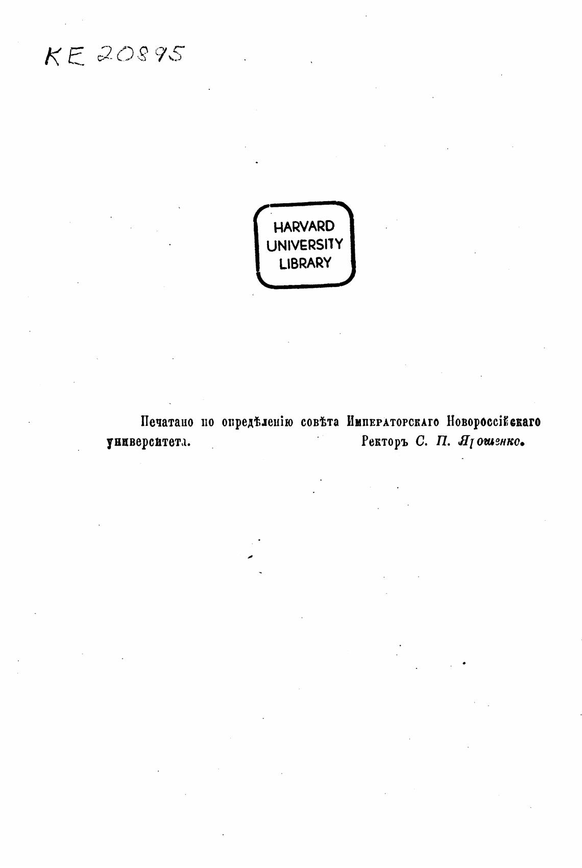 Печатано совма ИМПЕРАТОРСКАТО Новороссјйекаго