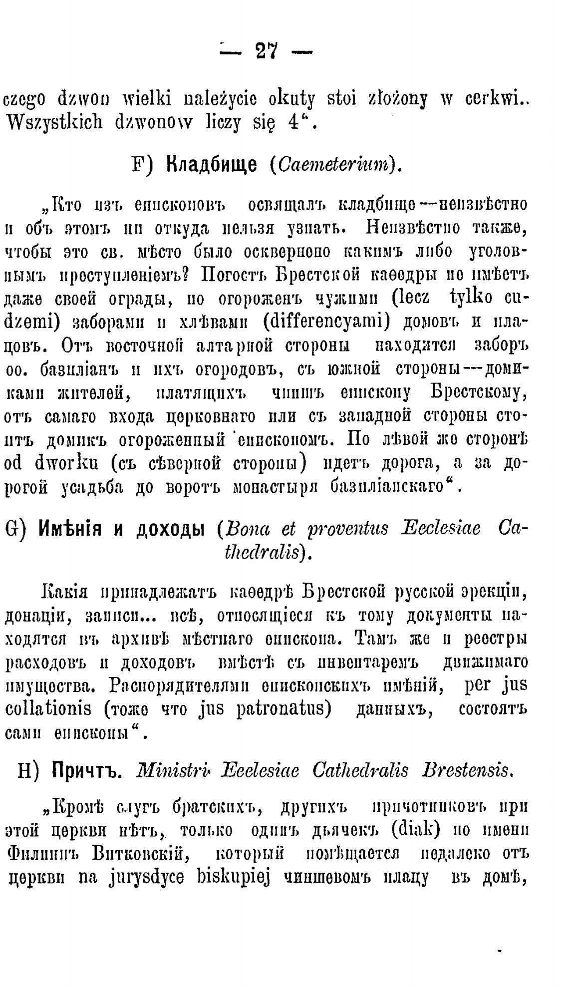 Н) Причты Ministri• Eeelesiae Catnedralis Brestensis.