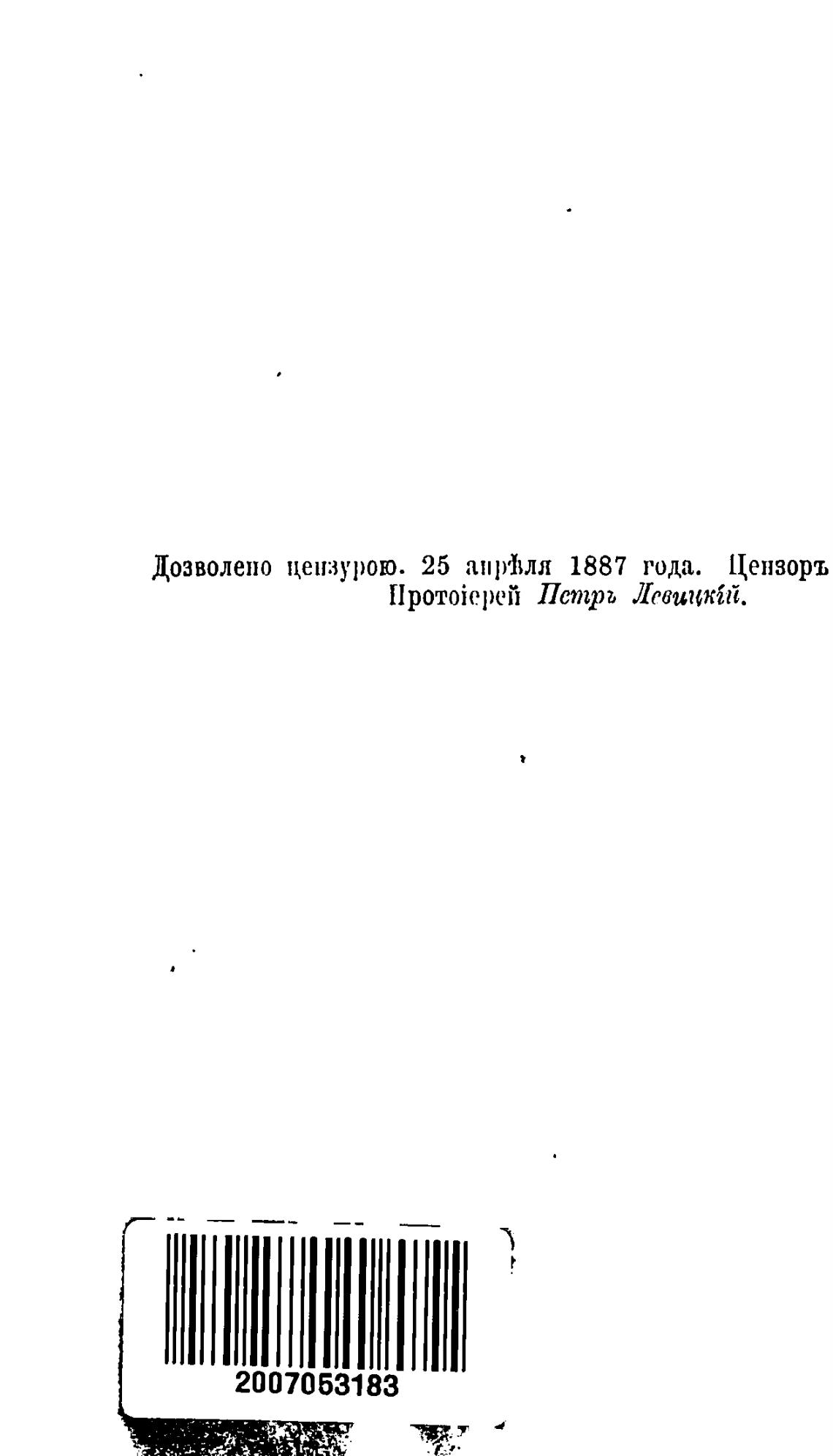 Дозволено цензурою. 25 аир'ђлл 1887 года. Цензоръ