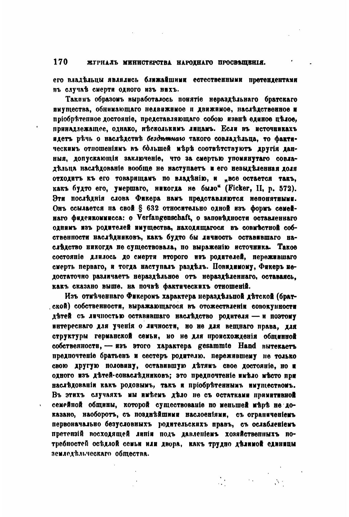 смерть перваго, и тогда наступал разд%лъ. Повидииоиу, Фикеръ ве-