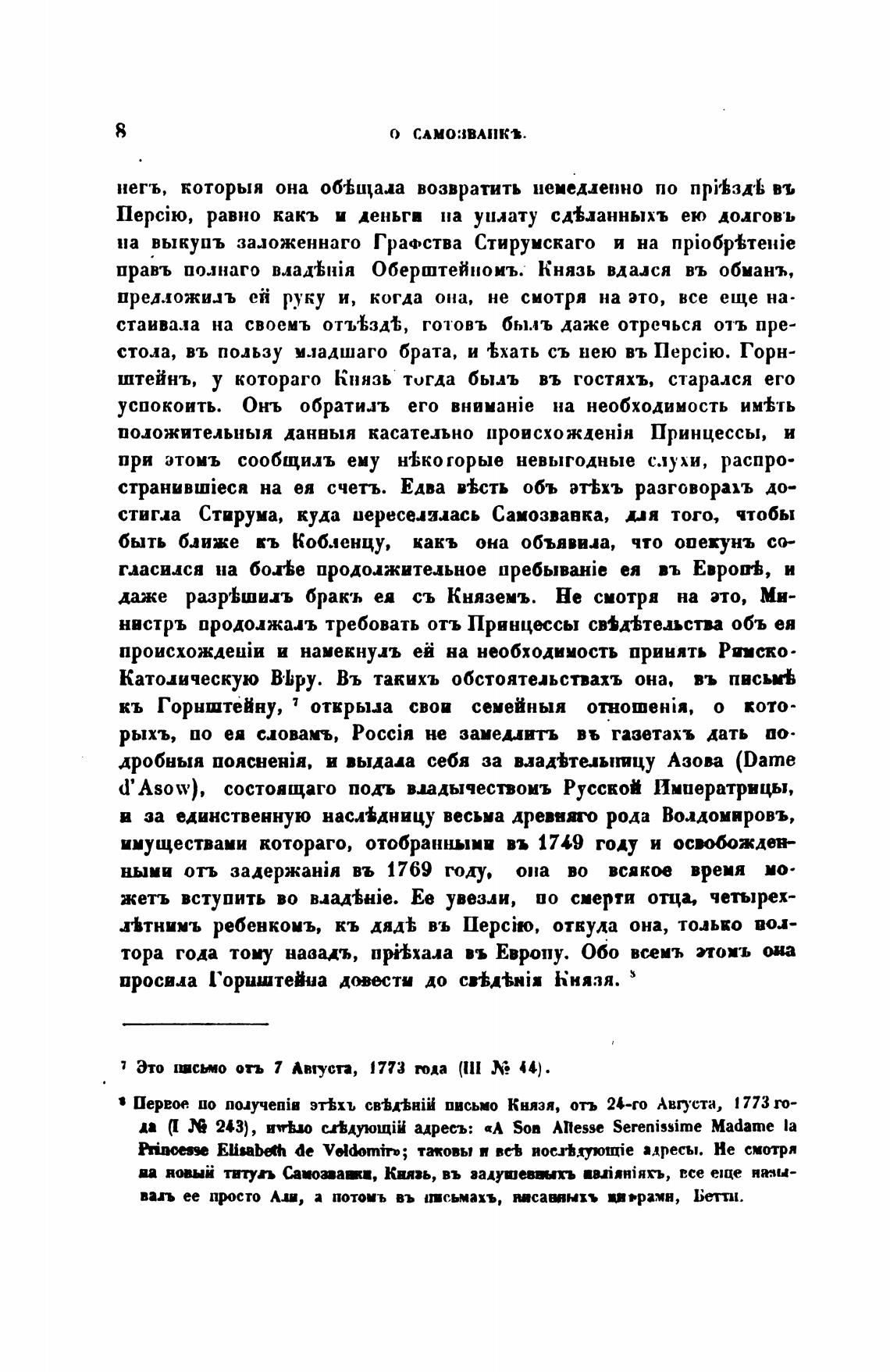 Первое ио noayqeniB эт±хъ письмо Князя, отъ 24-го Автста, 1773 го-