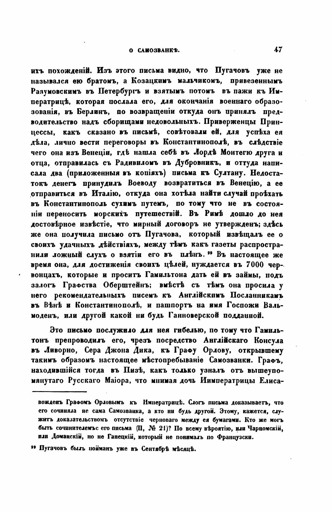 же она иолучила письмо отъ Пугачова, который из“щалъ ее о