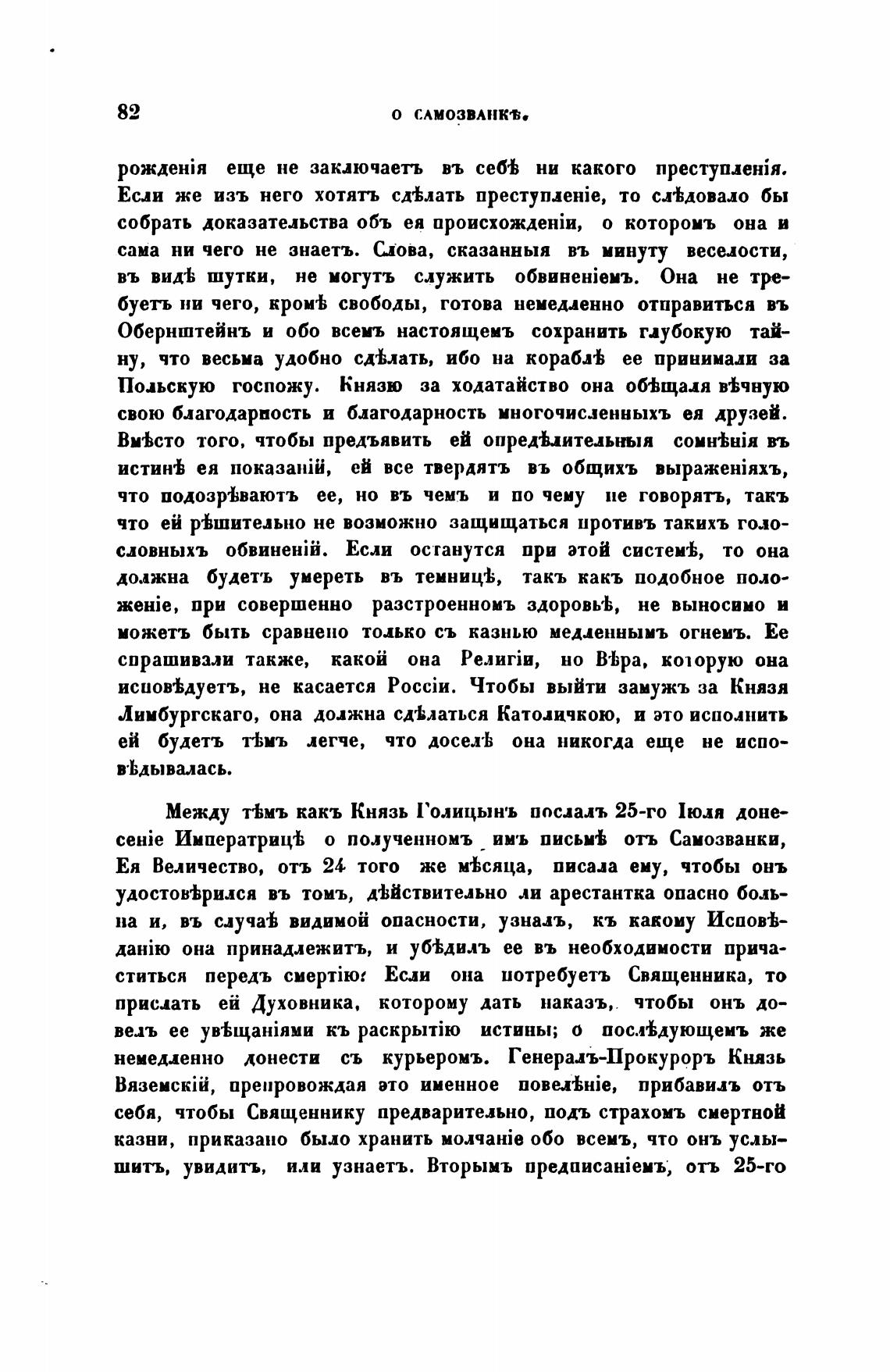 ceHie Императриц•ь о полученномъ имъ письм'Ь отъ Самозванки,