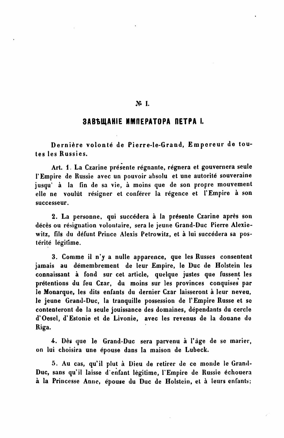Dernibre volont6 de Pierre-le-Grand, Empereur de tou-