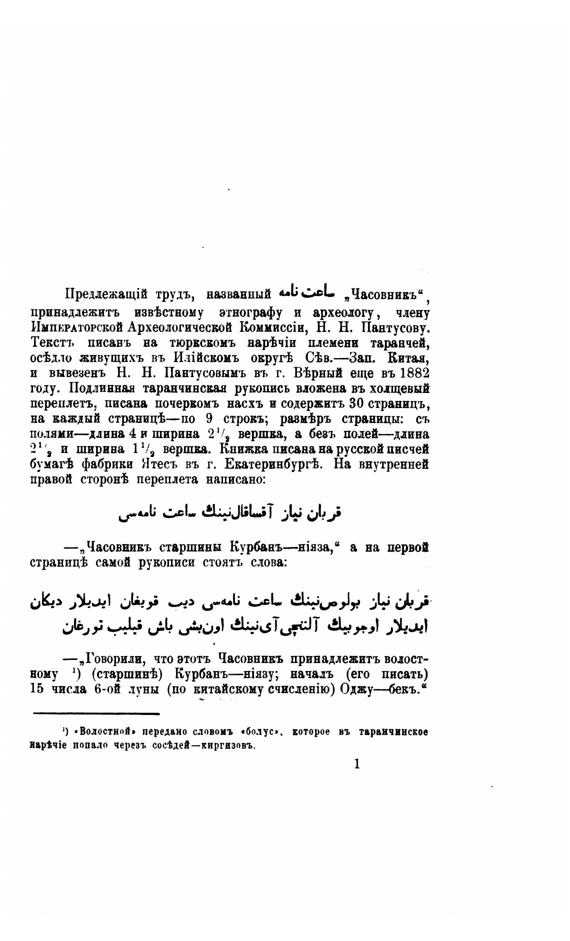 1) • Волостной» передано словомъ «болус•. которое въ таранчинское