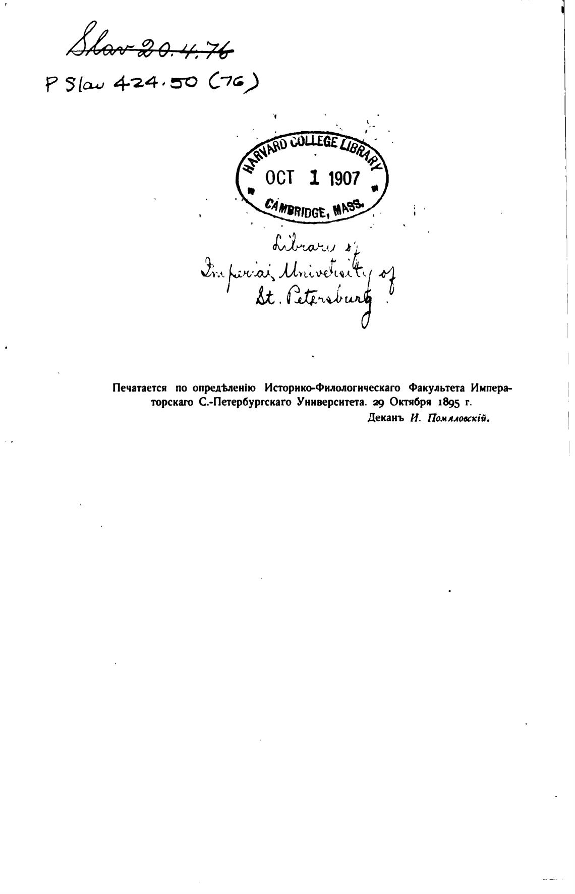 Деканъ И. Помялоккт.