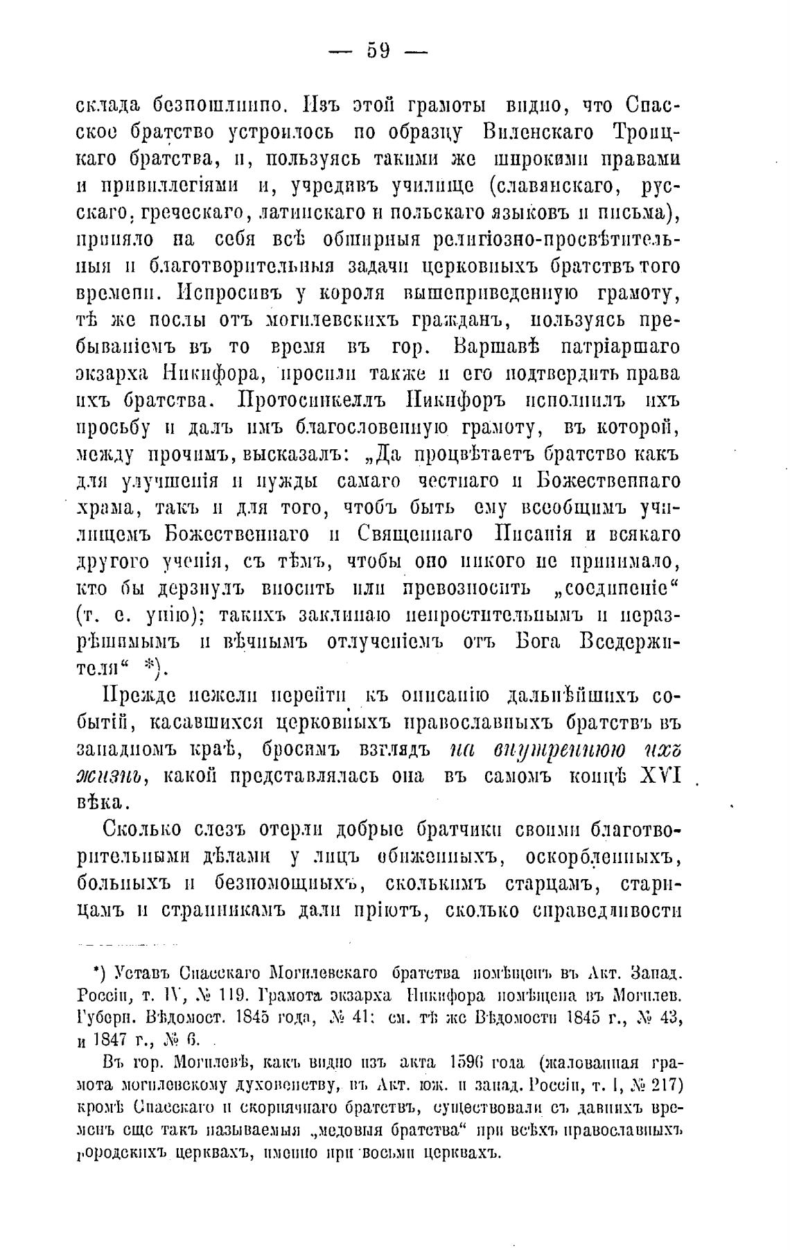 * ) Уставь Спасскаго Могилевскаго братства въ Акт. Запад.