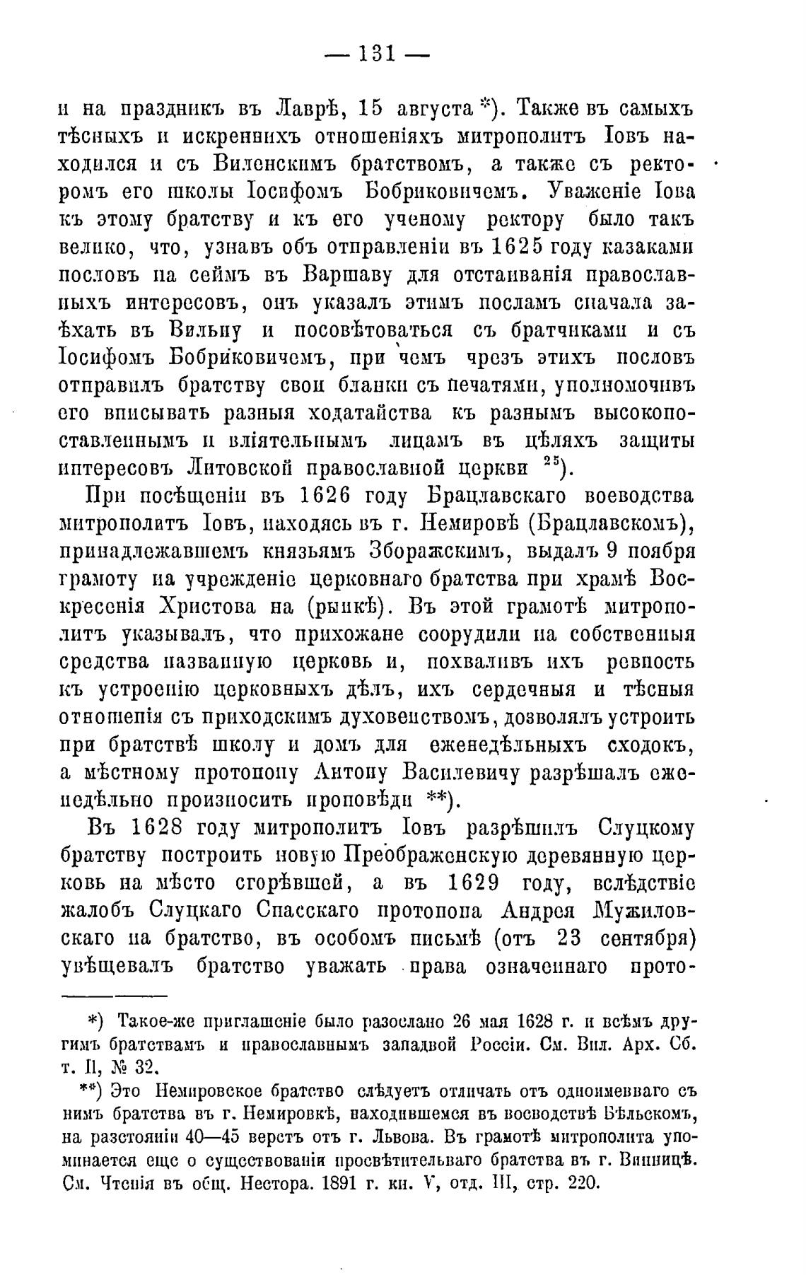 Въ 1628 году митрополитъ Говъ разр'Ьшндъ Слуцкому