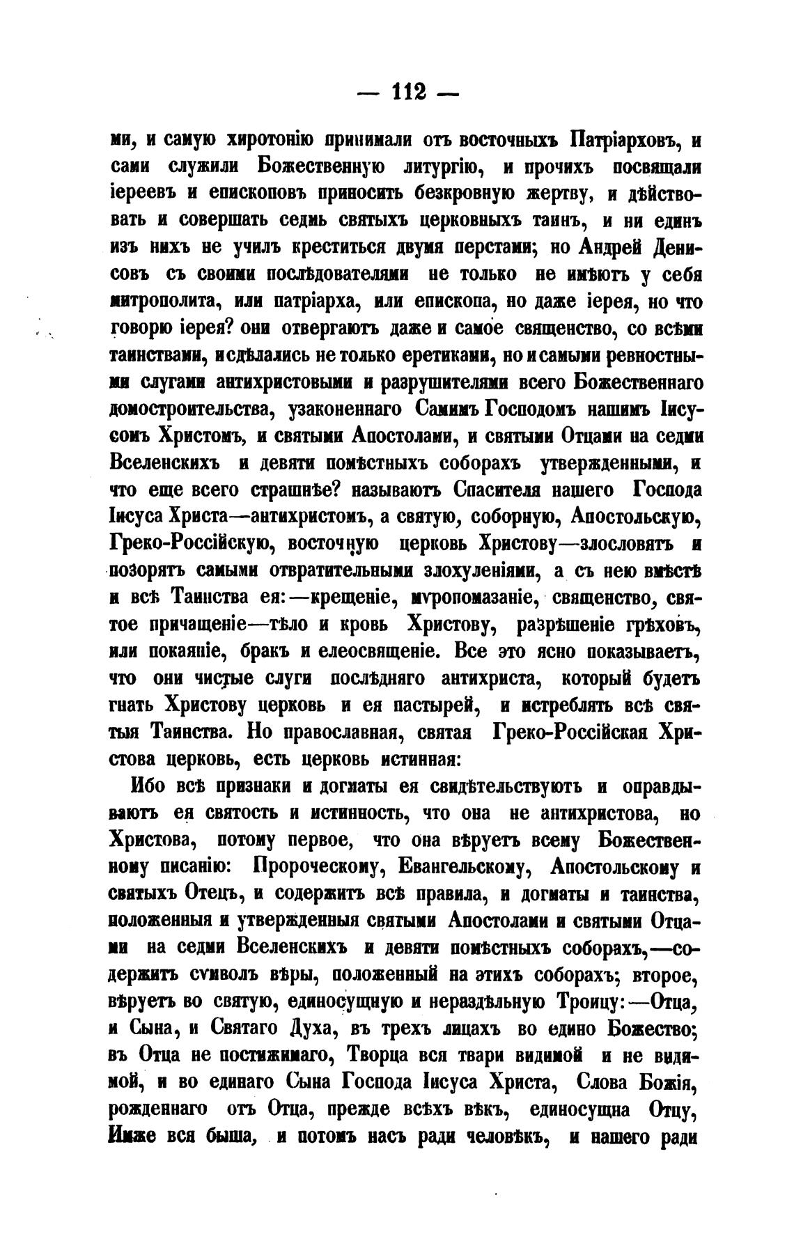 святыхъ Отецъ, и содержить правила, и догматы и таинства,