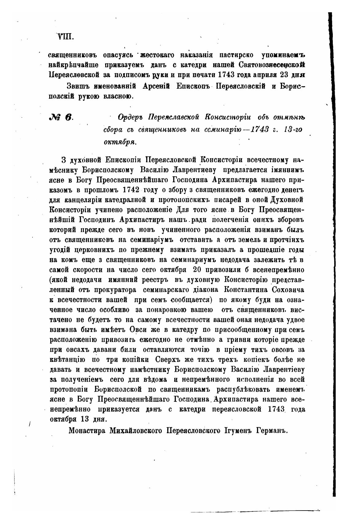 Монастира Михайловского Переясловского 1гуменъ Германъ.