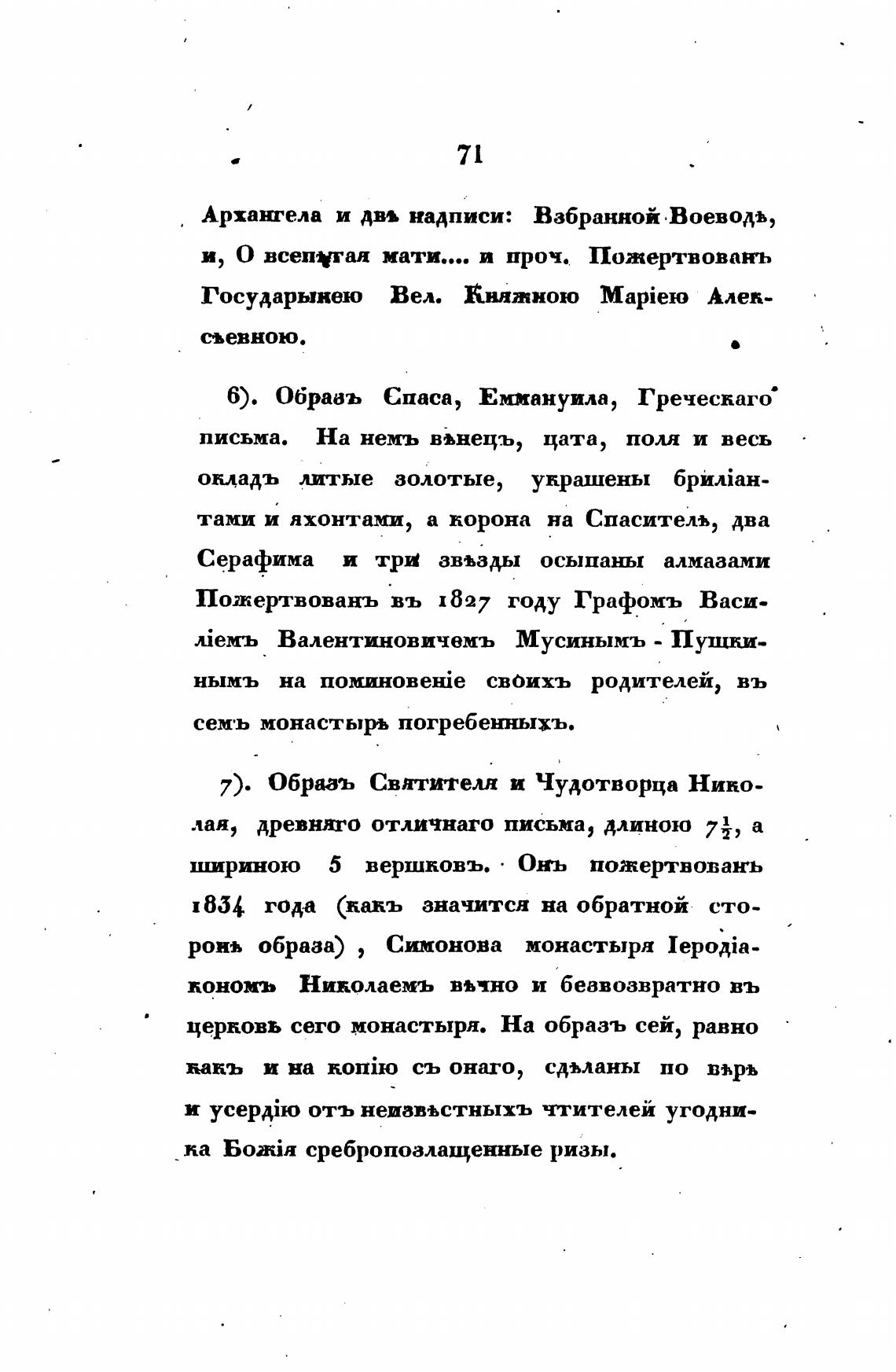 Пожертвовань въ 1827 году Графомъ Васи-