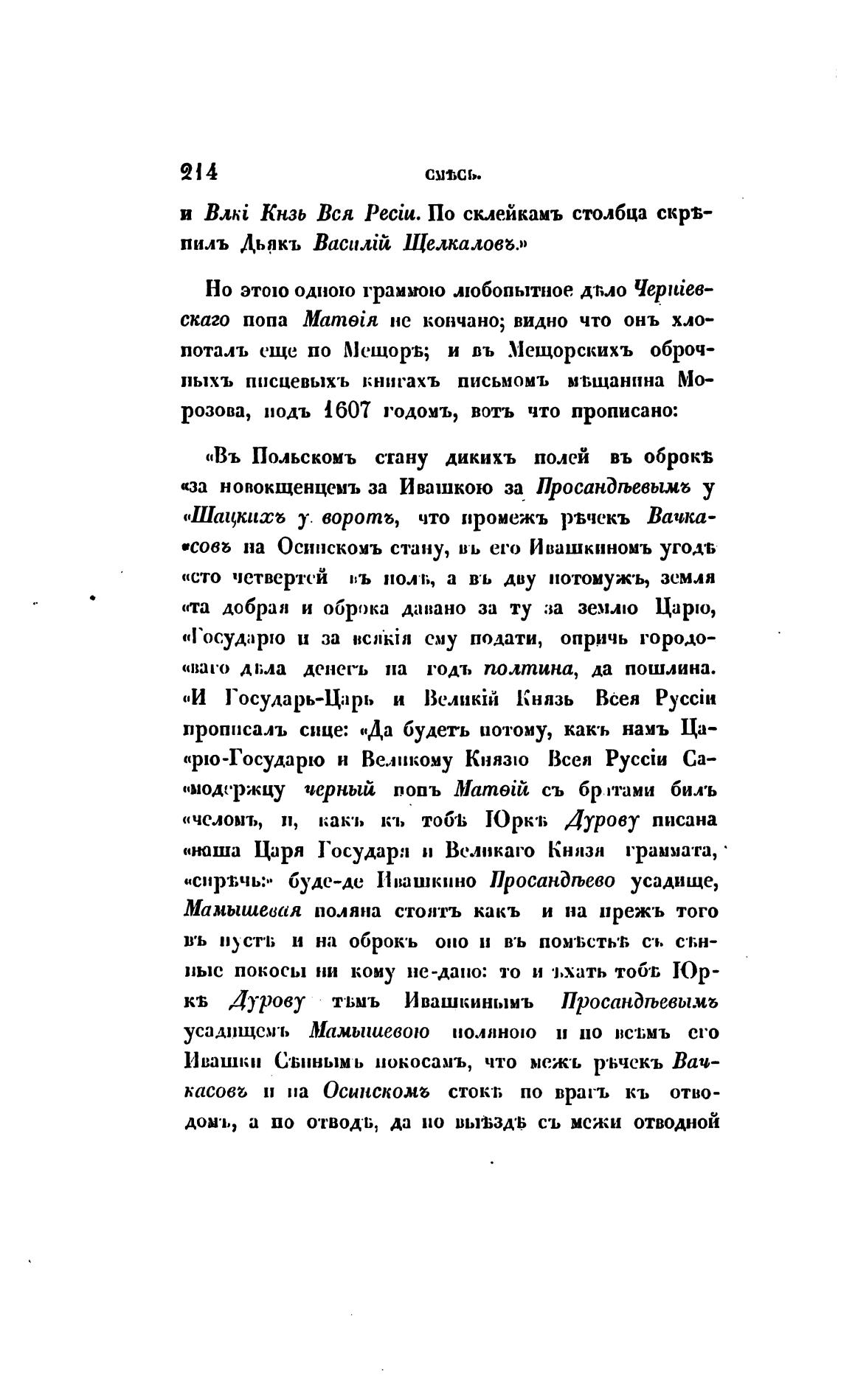 пыхъ писцевыхъ книгахъ письмомъ мт,щанина Мо—