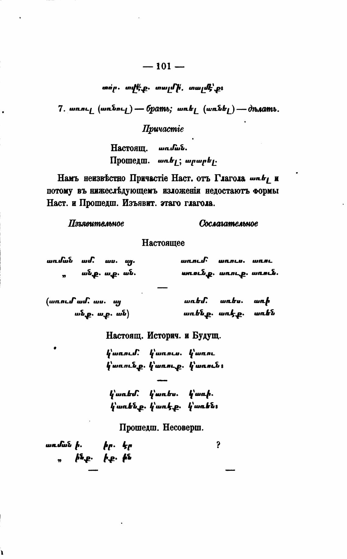 Наст. и Прошедш. Изъявит. этаго гдагоп.