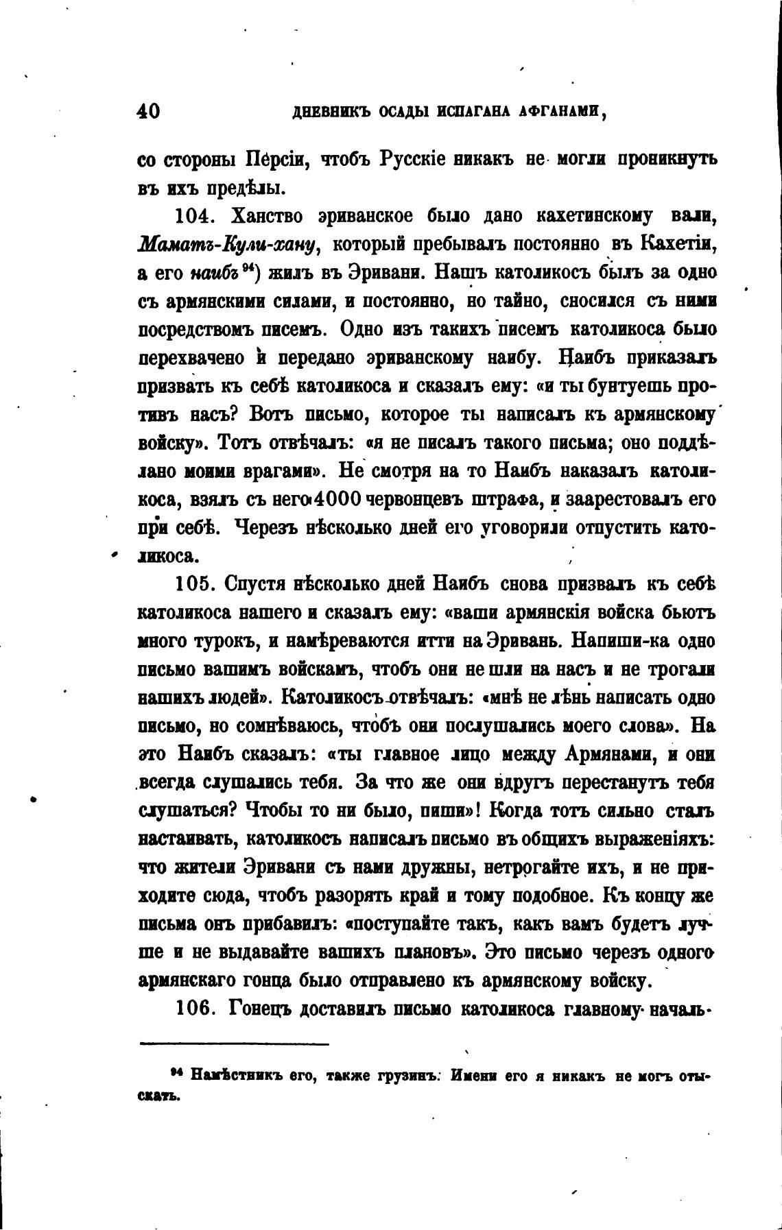 а его наиба Н) жигь въ Эривани. Нашь католикосъ быть за одно