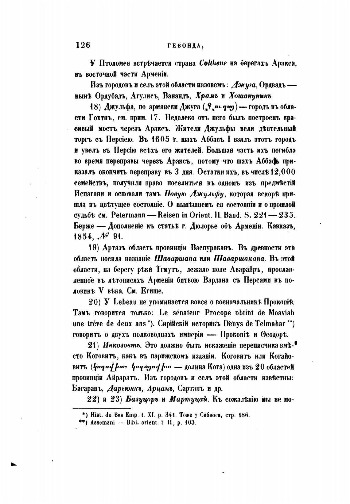 Багаранъ, Дарьюнкь, Арцапь, Сартапъ и др.