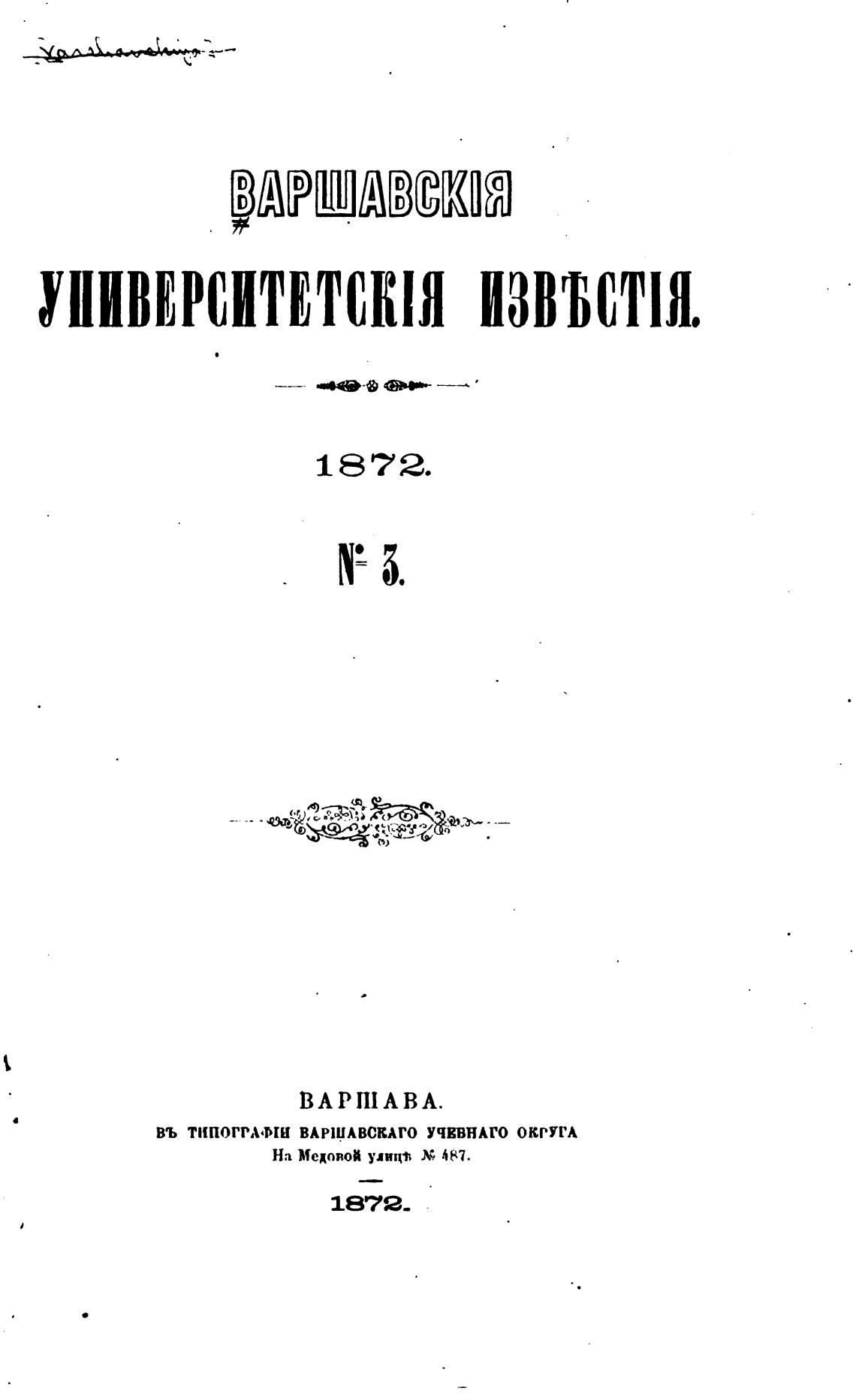 ВЪ ТИПОГГАФШ ВАРШАВСКАГО УЧВВНАГО ОКРУГА