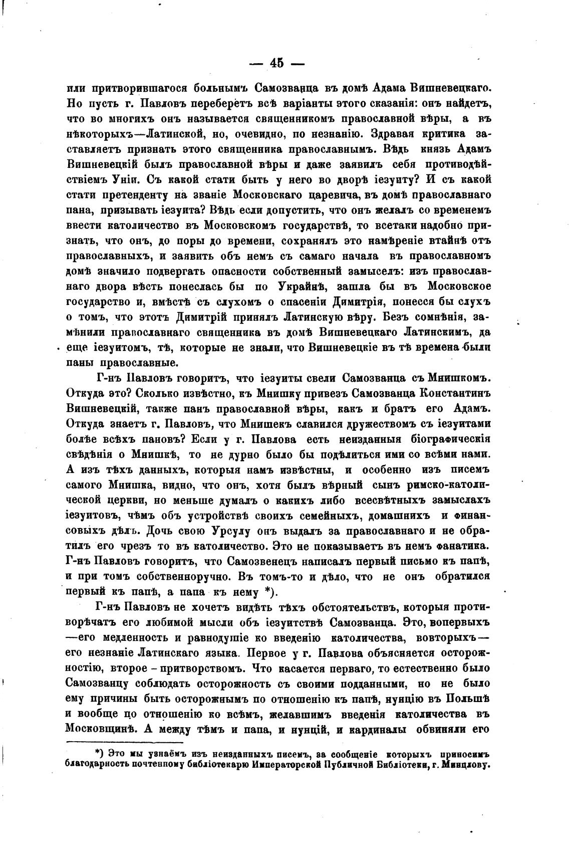 Г-нъ Павловъ говорить, что Самозвенецъ написалъ первый письмо кь папв,