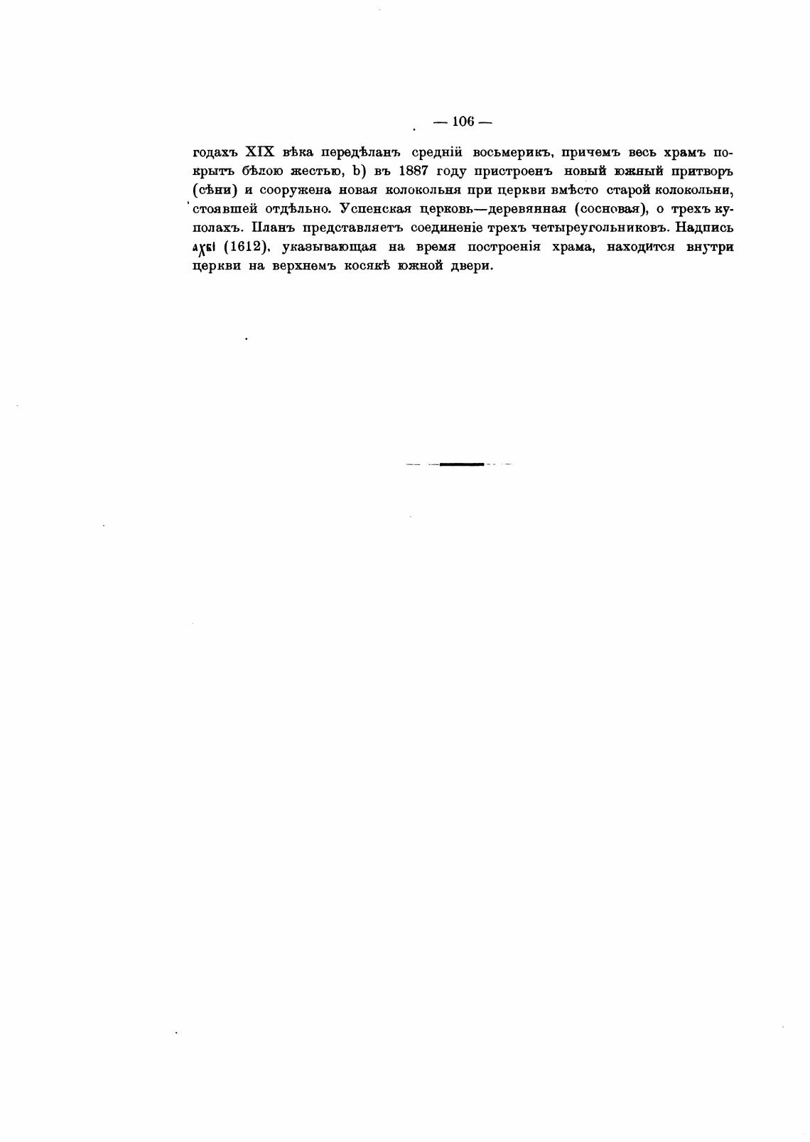 отдтльно. Успенская церковь—деревянная (сосновая), о трехъ ку-