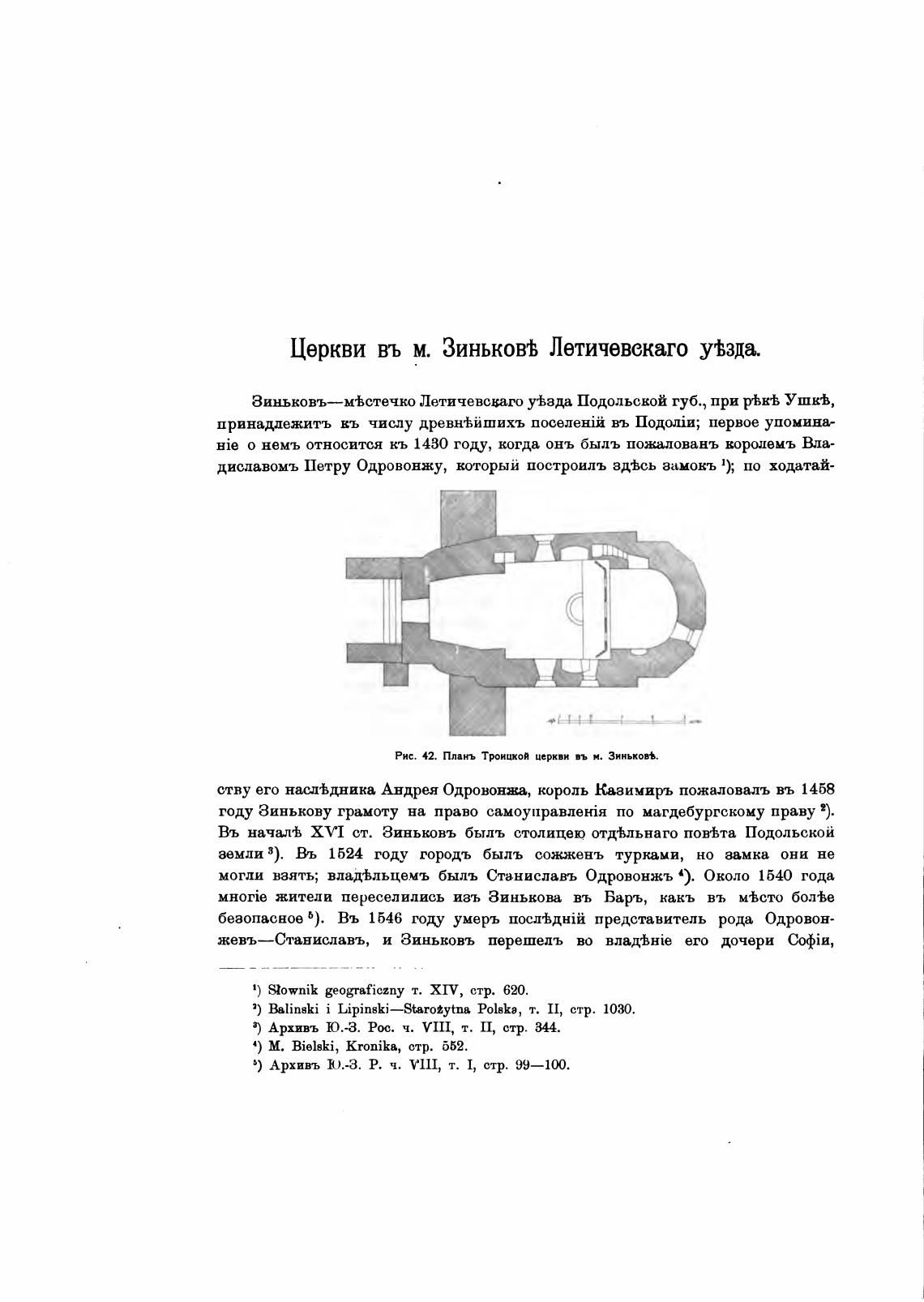 Рис. 42. Планъ Трицвой церкви въ м. Зинько“.