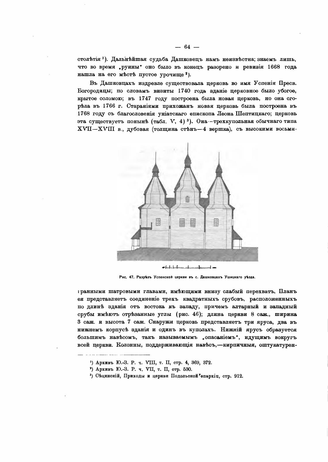Рис. 47. разрЬ3Ъ Успенской церкви въ с. Дашковиахъ Ушиикаго Взда.
