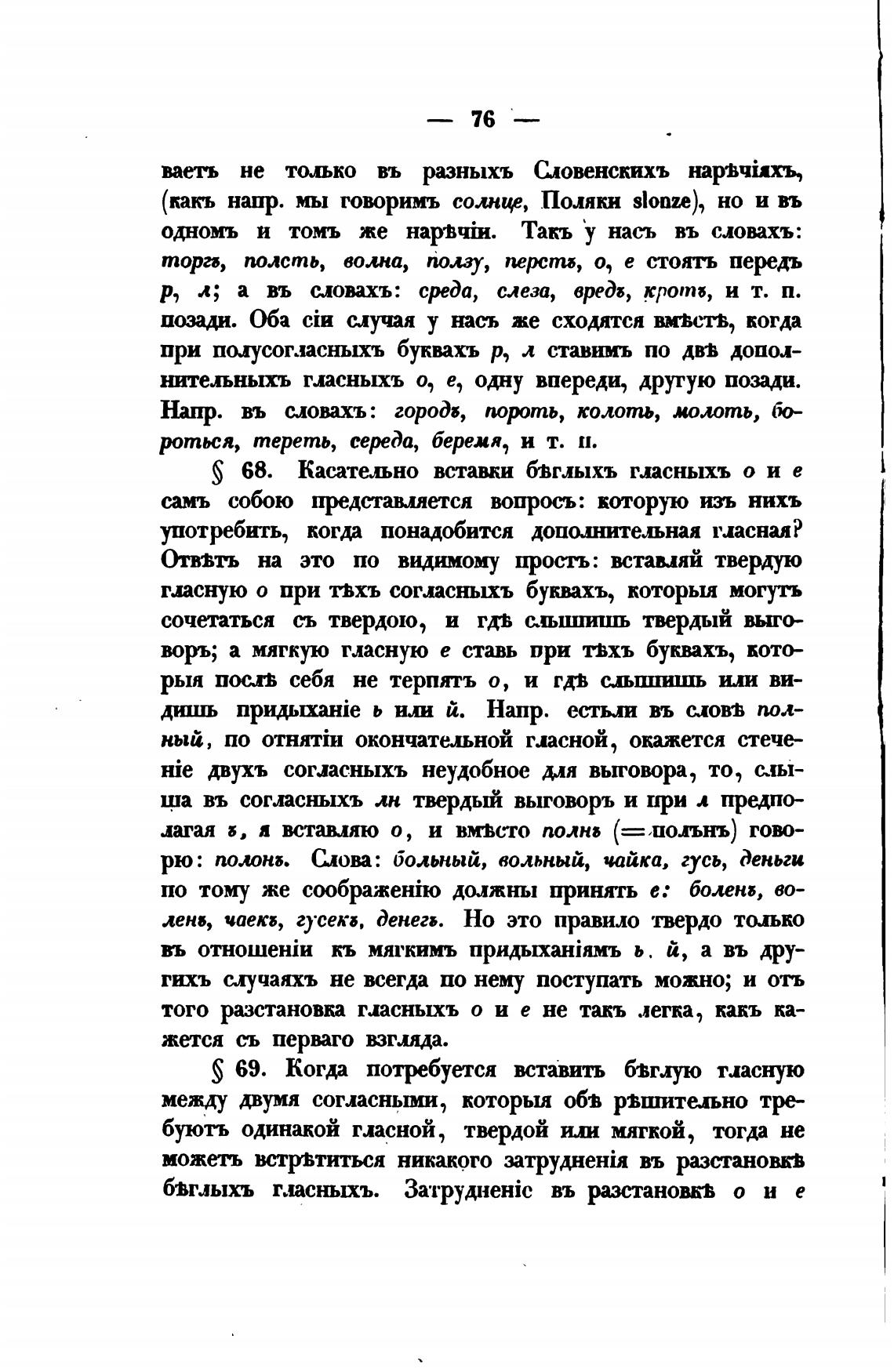 S 68. Касательно встаии бвглыхъ гласныхъ о и е
