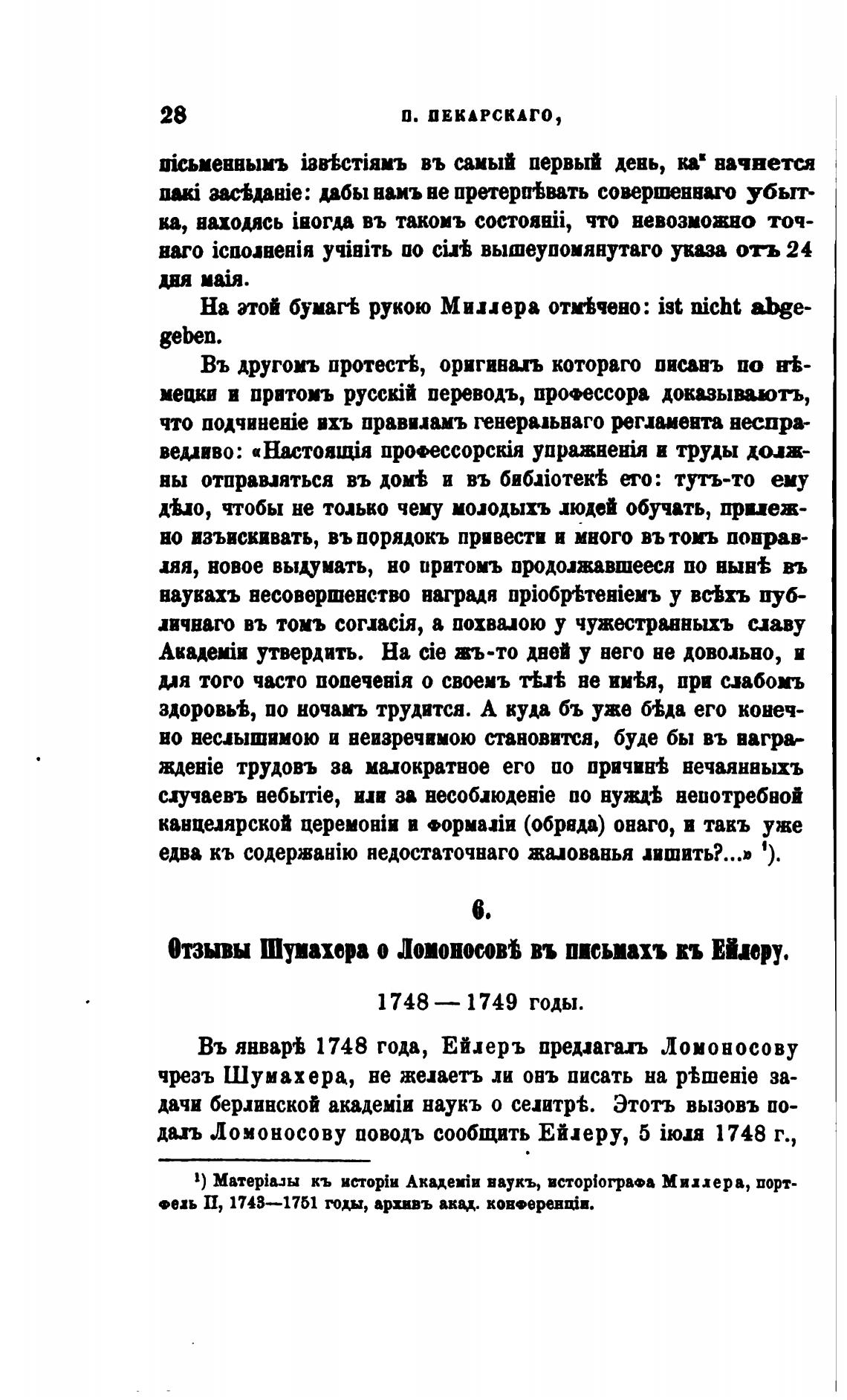 двхъ Ломоносову поводь сообщить Ейлеру, 5 ii0U 1748 г.,
