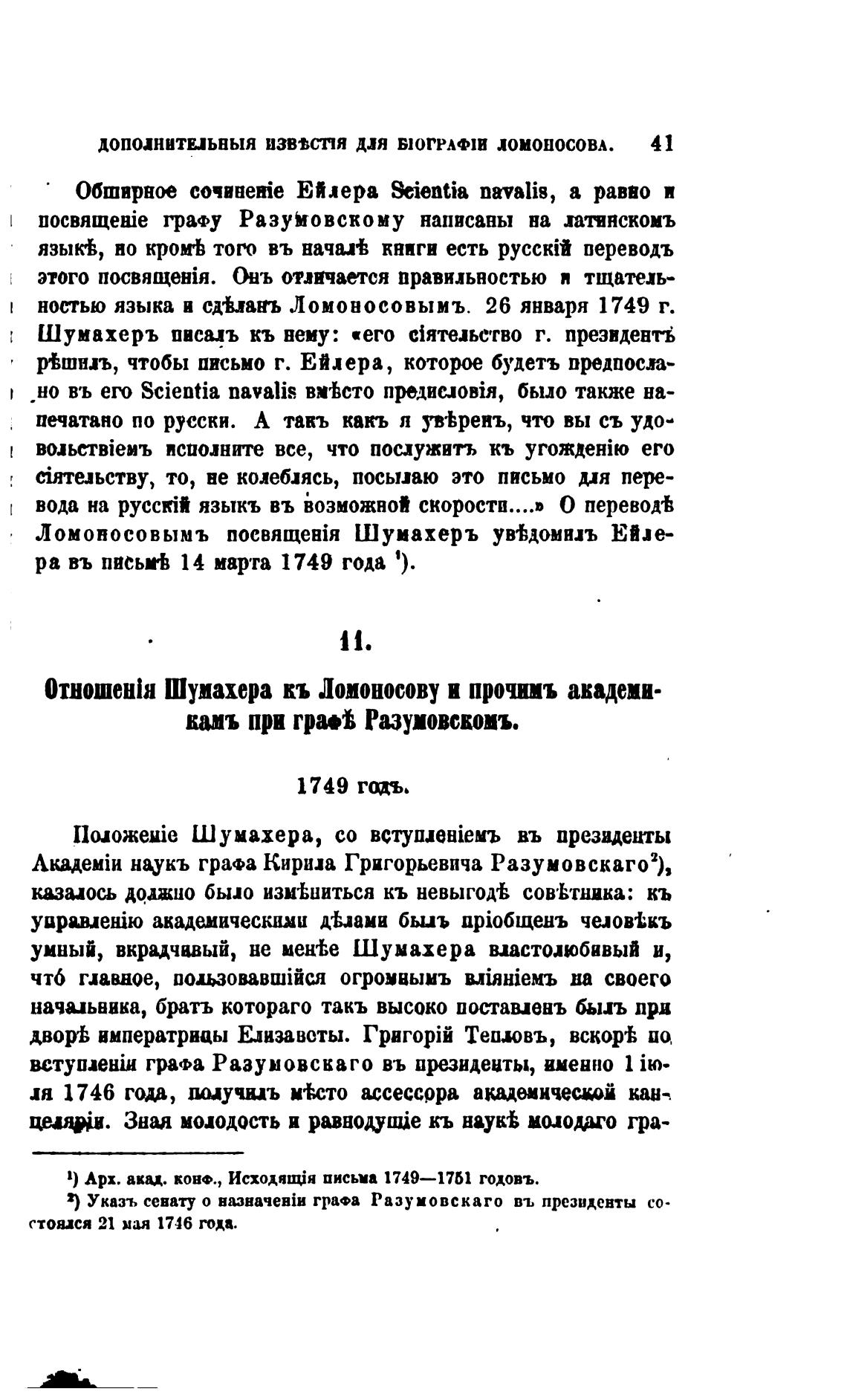 %Ломоносовымъ Шумахеръ ув%домилъ Ейле-