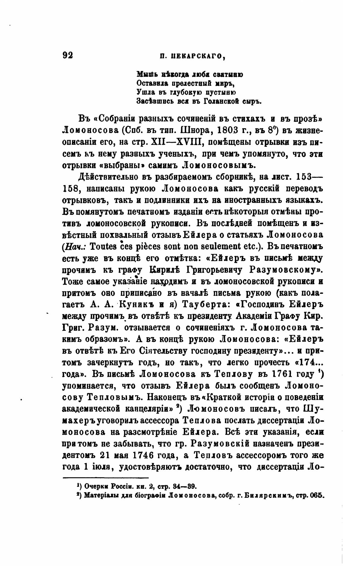 2) џя Ломоносова, собр. г. Билярскимъ, стр.