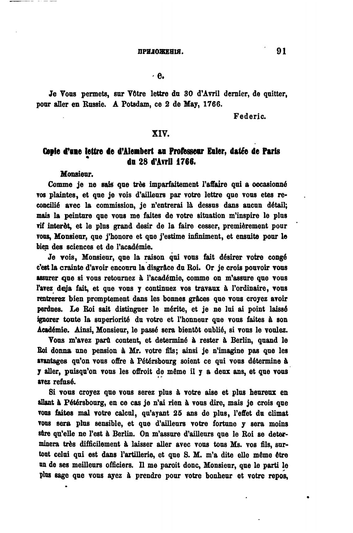 рот еп Russie. А Potsdam, се 2 de Мау, 1766.